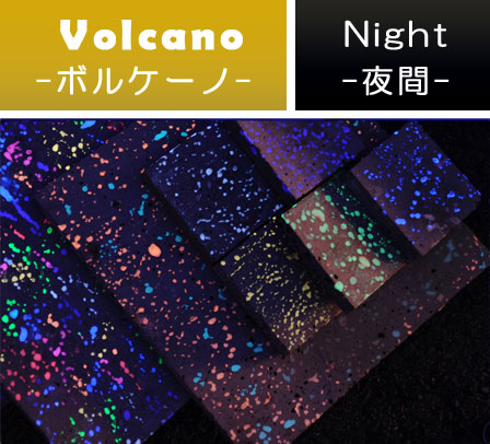 お家やお店、外出先でよく見かける「タイル」に様々な加工を施し、ブラックライトを照射することで色々なデザインを淡い輝きと共に表現することができます。